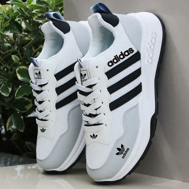 These Adidas casual sneakers offer a perfect balance of sporty style and everyday comfort, ideal for active lifestyles or casual outings. Designed with a breathable mesh upper combined with durable synthetic overlays, they ensure long-lasting wear and optimal airflow. The classic Adidas three-stripe design in white stands out against the sleek black and grey color combination, while the cushioned insole and lightweight sole provide excellent support and comfort for all-day use. Finished with Adidas branding on the side, tongue, and toe, these sneakers bring a timeless athletic look to any outfit.