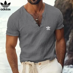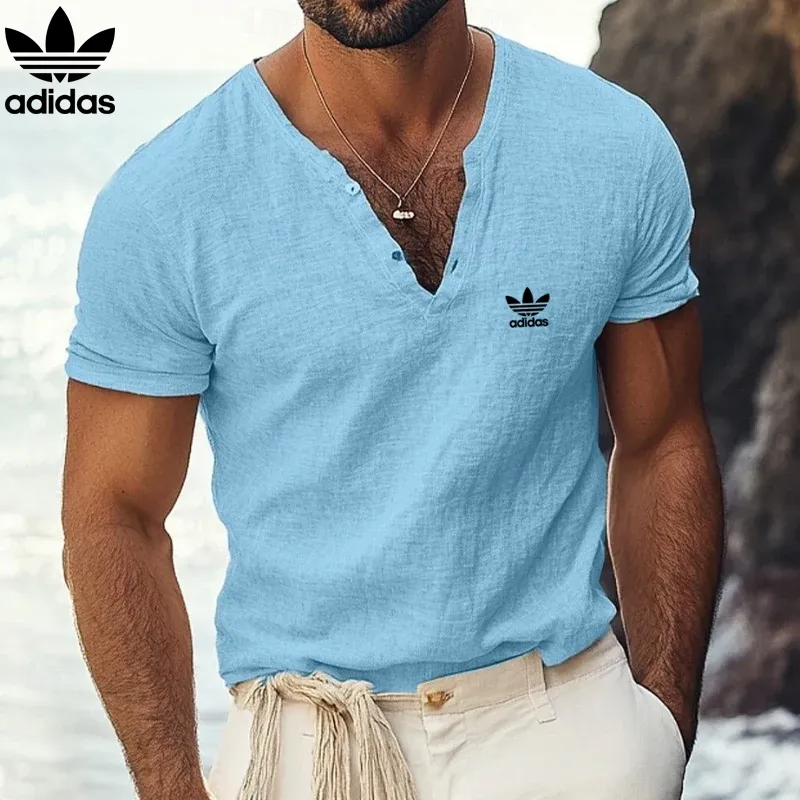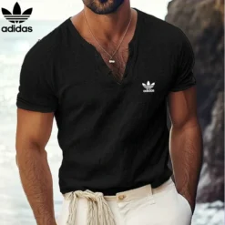 Adidas Men’s Casual V-Neck Short Sleeve Shirt – A stylish and comfortable shirt perfect for casual wear. Featuring a classic V-neck design with button detailing, this shirt is made from lightweight, breathable fabric for all-day comfort. The iconic Adidas trefoil logo on the chest adds a sporty touch, while the short sleeves and relaxed fit make it ideal for warm weather. Available in versatile colors like black and navy, this shirt pairs effortlessly with jeans, shorts, or chinos for a laid-back yet fashionable look.