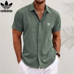 This Adidas men’s short-sleeve button-down shirt combines sporty simplicity with refined casual style. Made from lightweight, breathable fabric, it’s designed for all-day comfort whether you’re out for a casual day or relaxing in the evening. The shirt features a classic collared design, clean button closure, and a relaxed fit that offers ease of movement. Its light blue tone brings a fresh, versatile look, while the iconic Adidas Trefoil logo embroidered on the chest adds a sporty signature touch. Perfect for pairing with jeans, shorts, or chinos, this shirt delivers effortless style with a modern athletic edge.