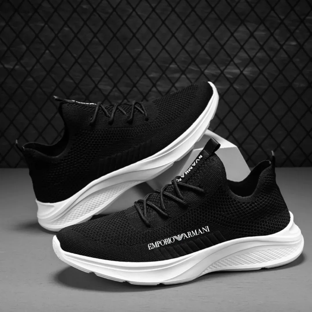 Step into comfort and style with these Emporio Armani sports sneakers. Crafted with a breathable knitted mesh upper, these shoes offer lightweight flexibility perfect for daily wear, gym sessions, or casual outings. The design features a sleek silhouette with the Emporio Armani branding on the side and tongue for a premium touch.