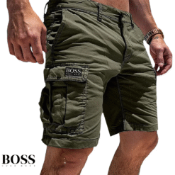 Hugo Boss Men’s Cargo Shorts – Stylish and practical, these shorts are crafted from high-quality cotton fabric for durability and comfort. Designed with a relaxed fit, they feature a functional side cargo pocket adorned with the classic BOSS HUGO BOSS logo patch for a premium touch. Perfect for casual wear, beach outings, or summer adventures, these shorts combine utility with modern fashion. Available in versatile colors like khaki and army green to suit any style.