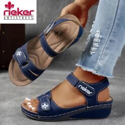 These Rieker Antistress sandals combine comfort and support in a vibrant, stylish package. Crafted with soft, cushioned insoles and adjustable Velcro straps, they ensure a perfect fit for all-day wear. The wedge sole provides added lift without compromising on stability, while the durable stitching and signature Rieker logo details add a touch of sporty elegance. Available in a variety of eye-catching colors like red, tan, navy, and green, these sandals are the perfect blend of function and fashion for casual outings or everyday comfort.