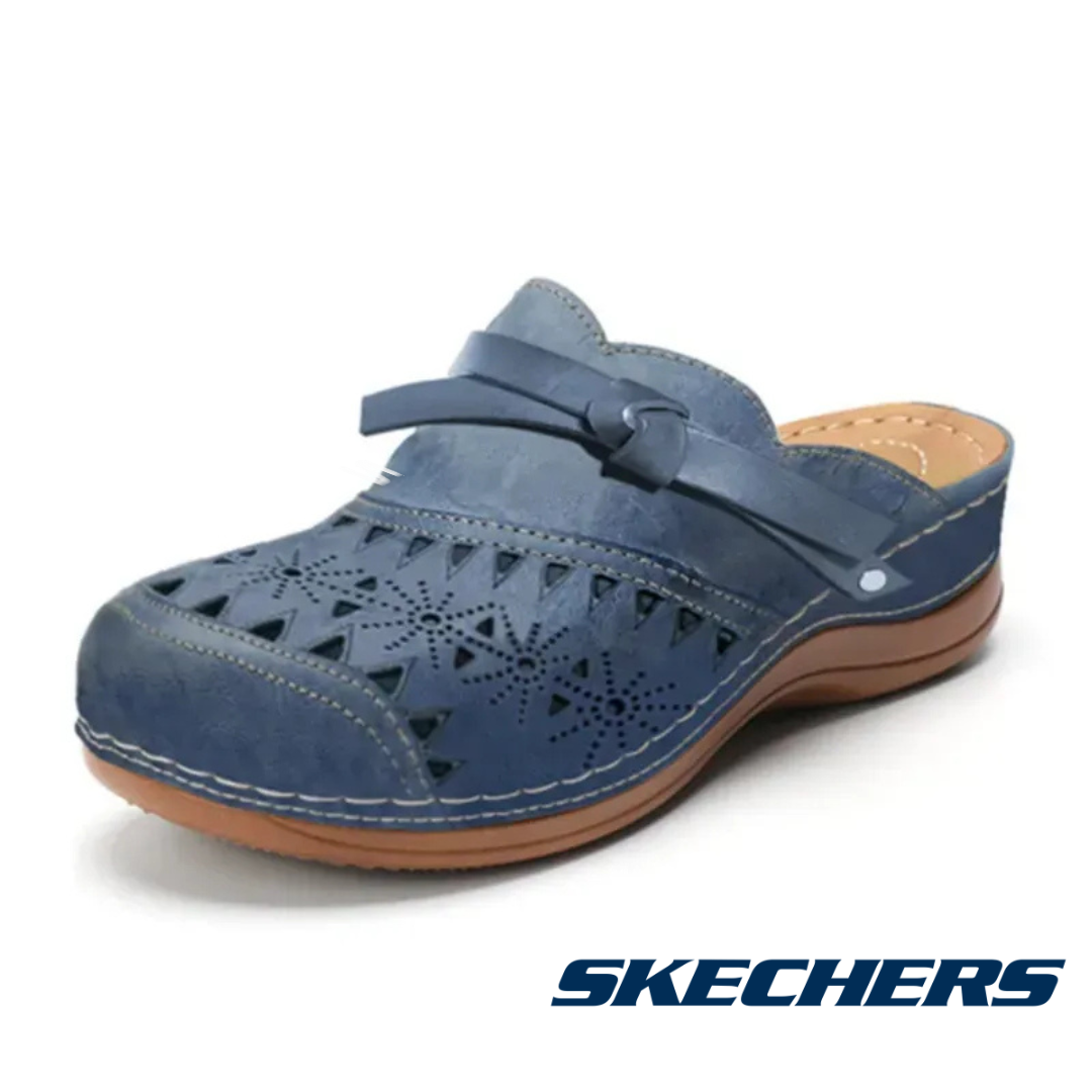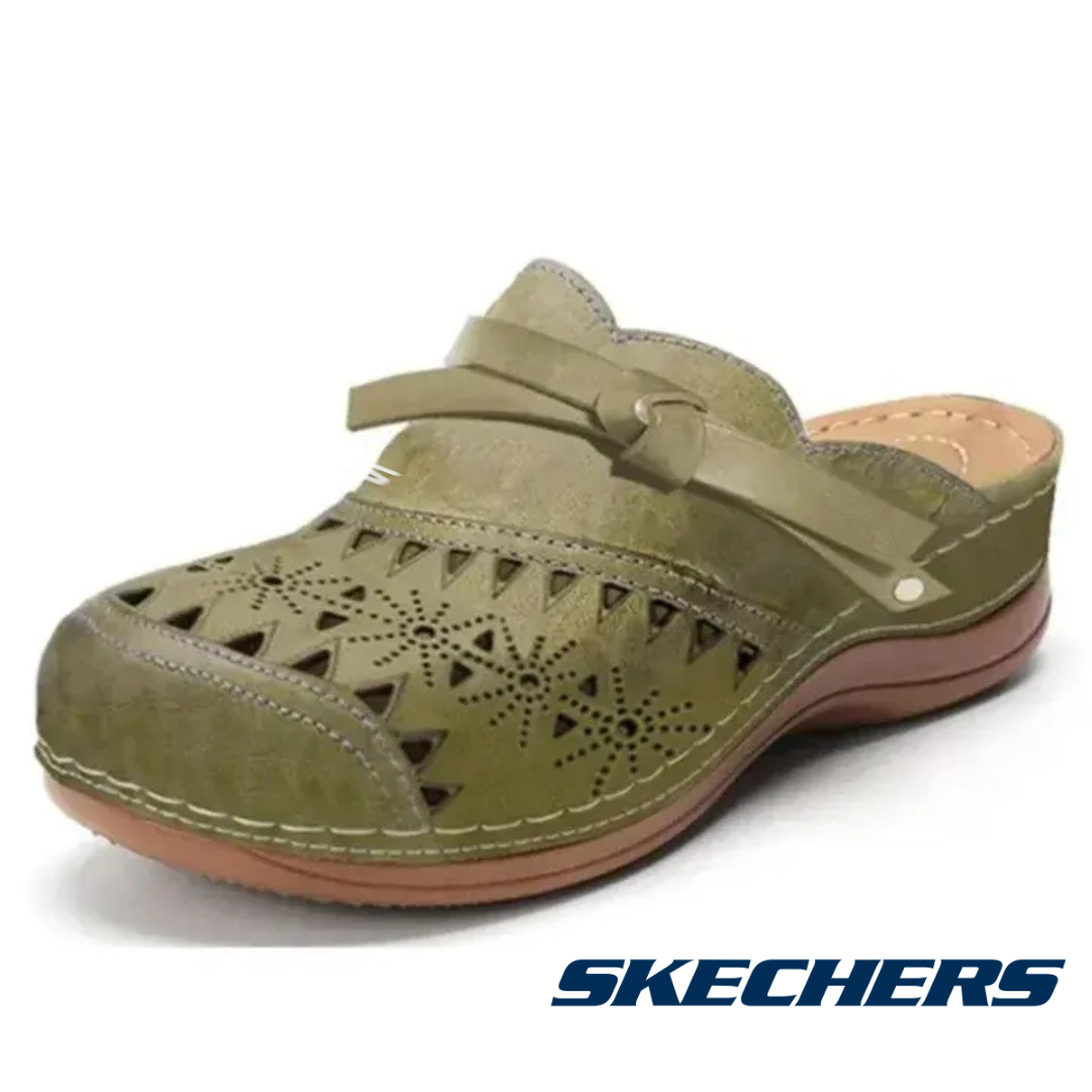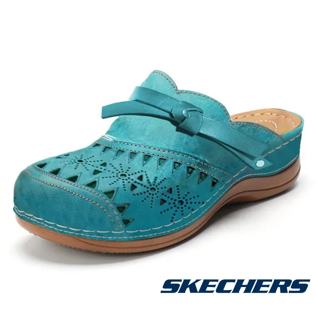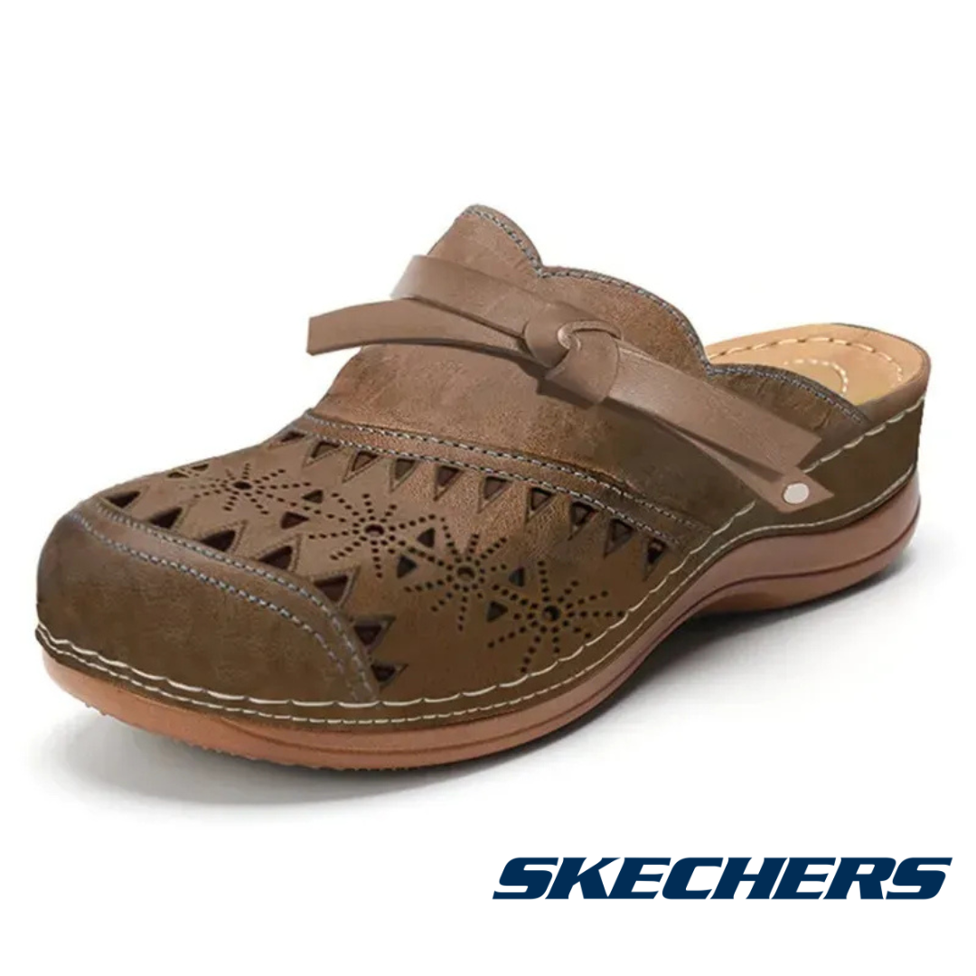 These Skechers comfort clogs offer a perfect blend of functionality and style. Featuring a slip-on mule design, they are crafted with laser-cut floral and geometric detailing for breathability and flair.