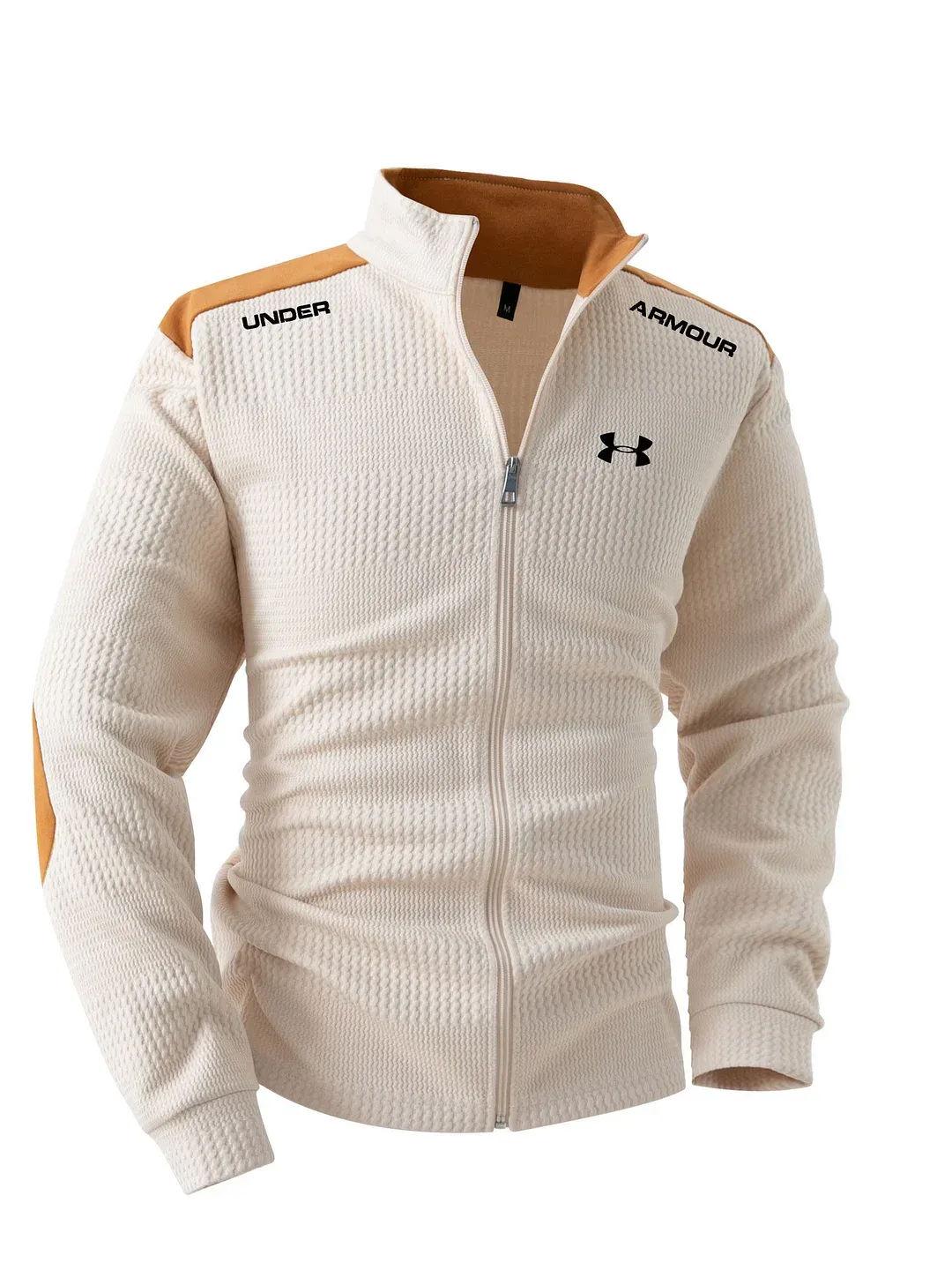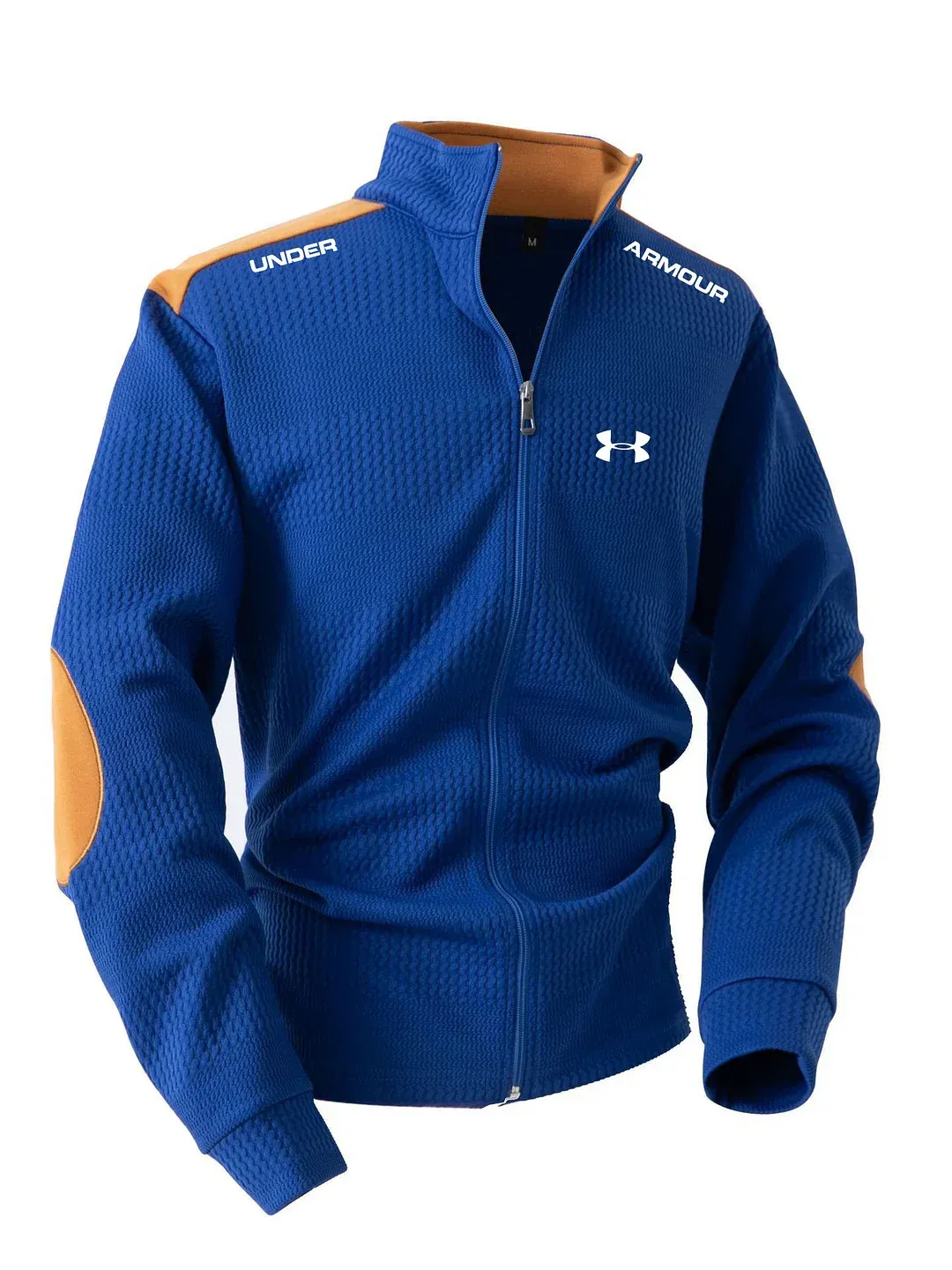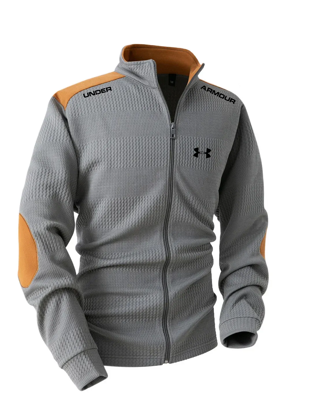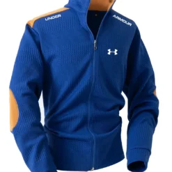 Upgrade your outerwear with this stylish Under Armour full-zip jacket featuring a modern design, contrasting shoulder accents, and elbow patches for durability and flair. Crafted from breathable textured fabric, it delivers both comfort and performance—ideal for training or casual wear. Available in a range of colors, this jacket keeps you warm without sacrificing movement, making it a versatile wardrobe essential.